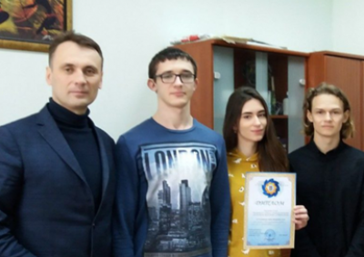 Проф. Вернигородський С.В. із студентами – переможцями ІІ етапу Всеукраїнської студентської олімпіади з навчальної дисципліни «гістологія, цитологія, ембріологія» м.Полтава, 2019р.