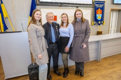 Великий прихильник та адвокат України, насамперед у США, Лоуренс ДюБаскі почав свою лекцію незвично: слайдами з фотографіями українських і польських предків, а також усіх тих, кому професор допомагає робити науку в Україні.