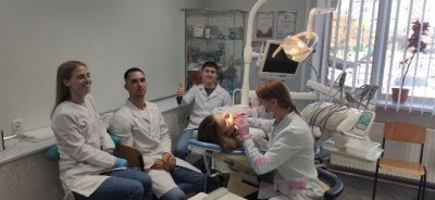 Студенти мають можливість спостерігати за клінічним прийомом, асистувати практикуючим лікарям та разом з викладачем проводити консультування та лікування стоматологічних хворих.