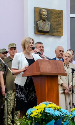 Головний лікар Військово-медичного клінічного центру Центрального регіону Пашковський Сергій Миколайович, який теж є випускником ВНМУ, привітав майбутніх колег, закликав їх добре вчитися й не забувати про тих, хто зараз захищає наше мирне буття на лінії фронту. На згадку про це він подарував університету привезений зі сходу герб України, викарбований кулями на зрізі дерева.