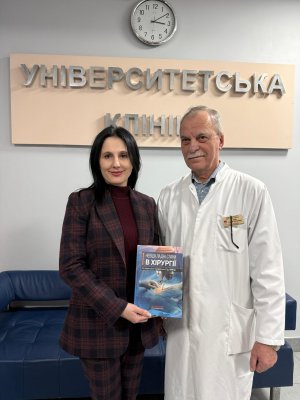 Вона високо оцінила діяльність клініки як закладу, де лікування пацієнтів поєднується із підготовкою майбутніх лікарів і наукою та базується на реальній клінічній практиці. Одним із підтверджень того, як швидко реалії воєнного часу стимулюють зміни у протоколах лікарської допомоги, є навчальний посібник «Невідкладні стани в хірургії» — його Ірині Борзовій презентував редактор видання, завідувач кафедри загальної хірургії ВНМУ, професор Сергій Хімич.
