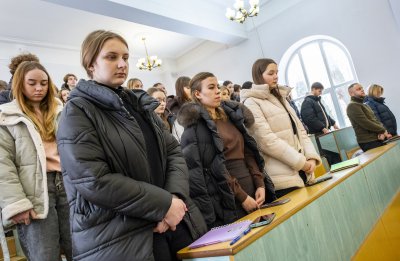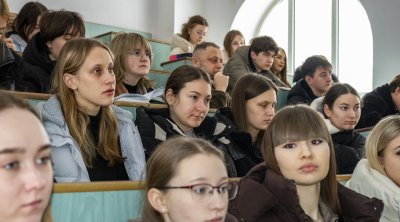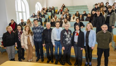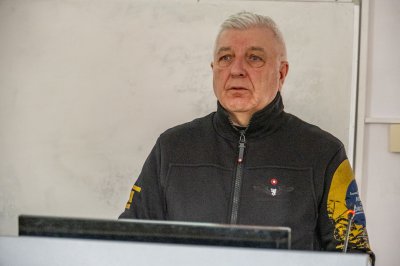 Доповідь доцента Валерія Лациби «Українські символи стійкості російсько-української війни» полонила слухачів із перших слів. Валерій Павлович зробив розгорнутий аналіз символів, які створила й продовжує творити сучасна історія: вербальних, візуальних, пісенних — від побажання «русскому кораблю» до олімпійського шолома Владислава Гераскевича. Доповідач підкреслив те, як зростає значення державної символіки у часи випробувань, її властивість консолідувати й надихати суспільство.
