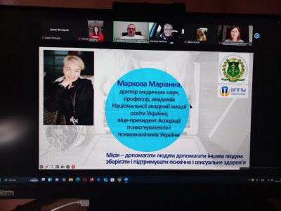 У понеділок відбулася онлайн-лекція на тему «Оргазм vs тривога (про секс, стосунки і виживання під час війни)» відомої української науковиці в галузі сексології, медичної психології та психотерапії, завідувачки кафедри сексології, психотерапії та медичної психології Харківського національного медичного університету професорки Маріанни Маркової. Цікава й змістовна лекція зібрала понад 150 студентів та викладачів: дозволила розширити знання і професійні компетенції з сучасної сексології, дізнатися про шляхи корекції проблем у сексуальній сфері, пов’язаних з впливом стресу війни.